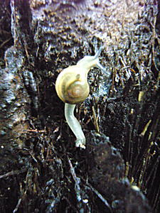 ヘゴの木に張り付いていた小さなカタツムリ。半透明の体が美しい。